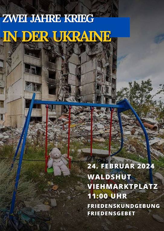 In der Erinnerung daran und mit der Hoffnung auf ein Ende dieses schlimmen Krieges findet in Waldshut am 24.2. eine Friedenskundgebung mit einem Friedensgebet statt.