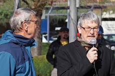 Wieland Bopp-Hartwig und Siegfried Rosemann feierten als Abschluss der Kundgebung ein Friedensgebet mit mehreren Liedern, Psalm, Lesung, Gebet und gemeinsamem Vaterunser. (Text unten)
