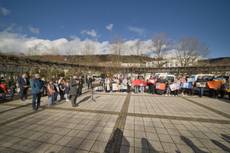 Nach der Kundgebung beschenkten Ukrainerinnen das Publikum mit Tulpen und luden zum gemeinsamen Essen von Brot / Brötchen ein.