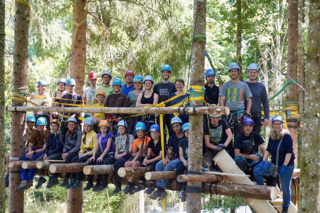 Das bedeutet: Stämme hochziehen, Knoten befestigen, viel Teamarbeit und ein richtiges Abenteuer. Das Baumhauscamp wächst nach und nach, verschiedene Plattformen werden – unter Anleitung eines Fachteams – direkt in die Bäume hinein gebaut und so lange erweitert, bis das Camp steht. In diesem Jahr wollen wir eine zweite Plattform errichten und so absichern, dass wir darin leben können. Leben, das heißt kochen, schlafen und in den Baumkronen chillen.