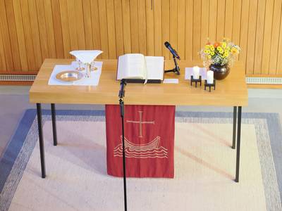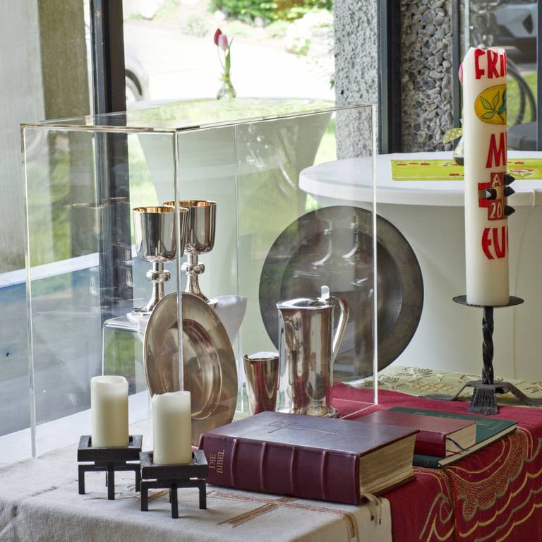Anschließend wurden die Bibel und das Antependium vom Altar, Abendmahlsgeschirr und Osterkerze, das Orgelbuch und symbolisch ein Gesangbuch aus der Kirche getragen und im Vorraum aufgestellt.