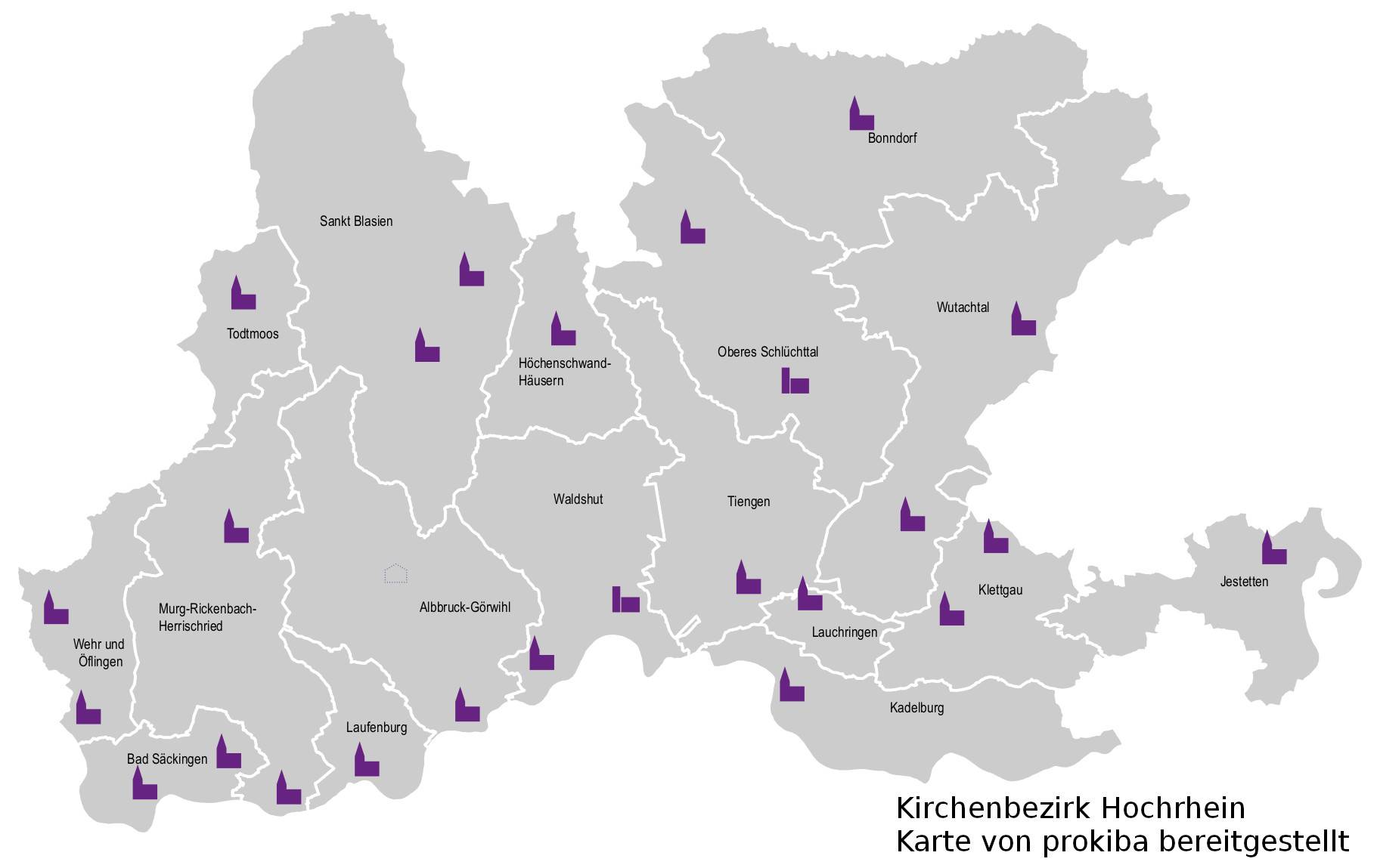 Im Bild unten sehen Sie die Kirchengemeinden des Kirchenbezirks.
